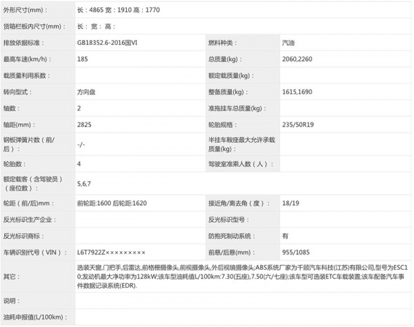 车身尺寸方面,豪越L的长宽高分别为4865mm、1910mm和1770mm,轴距达到了2825mm。这样的空间表现能够为车内提供宽敞舒适的乘坐体验。