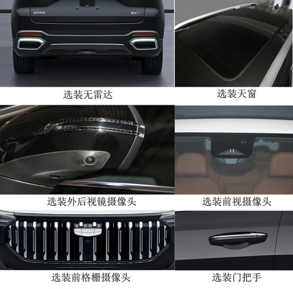 配置方面,新车提供了丰富的选装件,包括雷达系统、天窗以及多种样式的门把手。同时,豪越L还支持五座、六座和七座三种座椅布局,满足不同消费者的多样化需求。