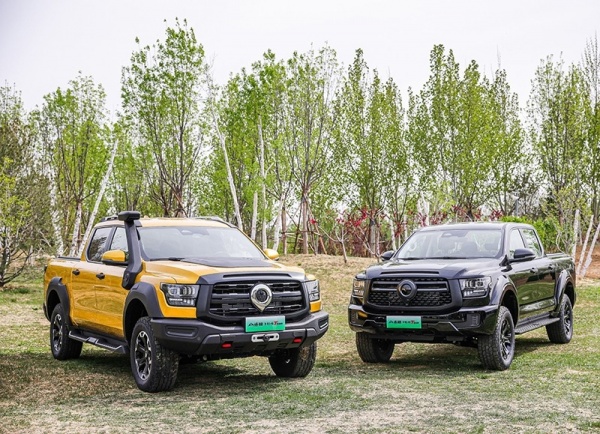 在外形设计上,新车进行了多项升级。性能版车型配备了全新的越野套件,包括经过黑化处理的中网以及更具野性的前后包围设计。前包围还特别加入了红色拖车钩作为点缀。同时,车身侧面增设了涉水喉装置,最大涉水深度达到900mm,并标配AT全地形轮胎。消费者还可以选择性配备T-MAX前绞盘以增强越野能力。整车尺寸方面,新车的长宽高分别为5440*1991*1945毫米,轴距3350毫米,货箱长度为1500*1520*500毫米。
